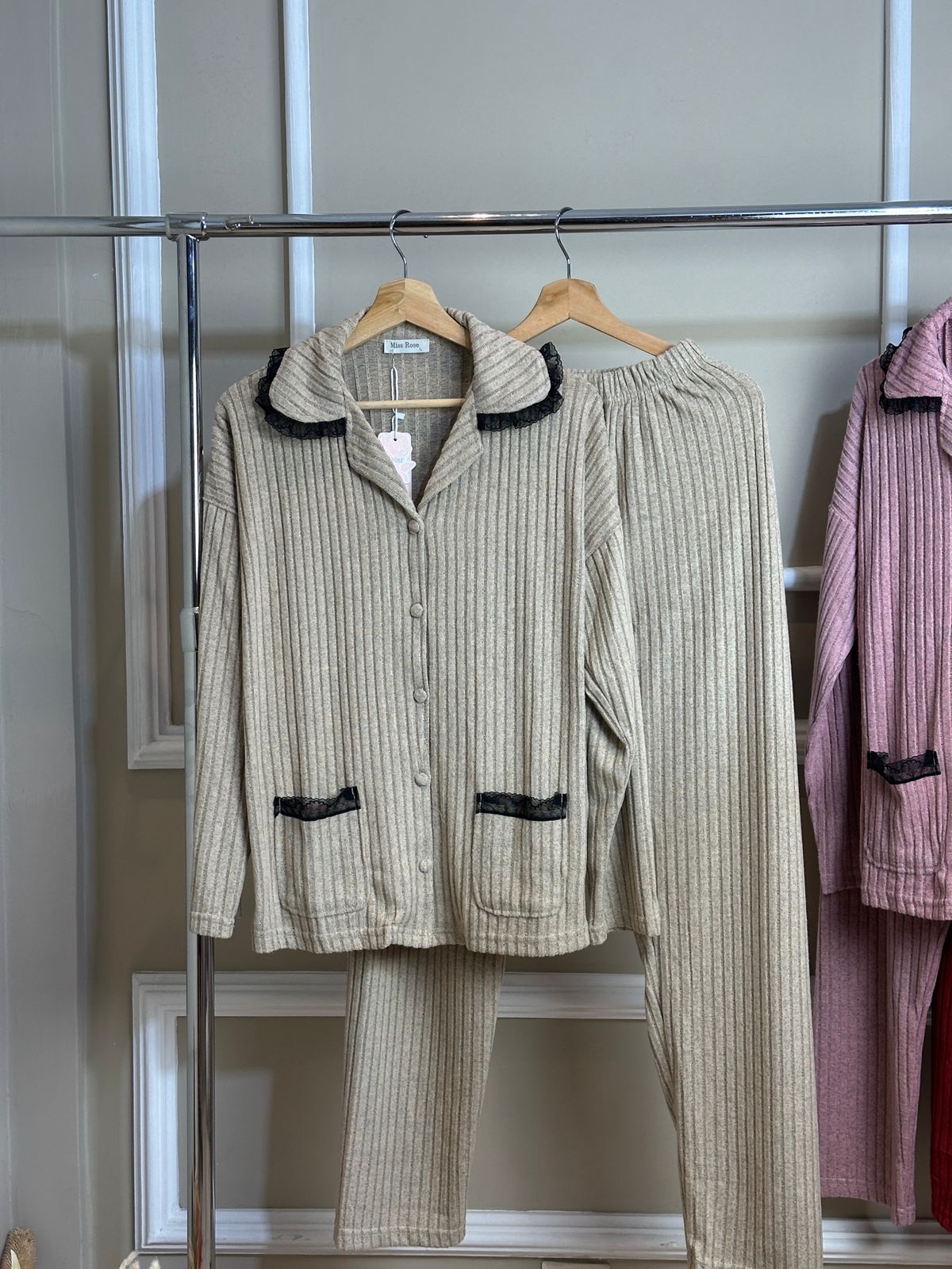 • Haut : Haut manches longues, encolure arrondie, coupe droite et fluide, broderie délicate au centre du buste